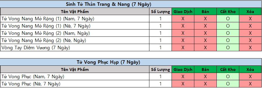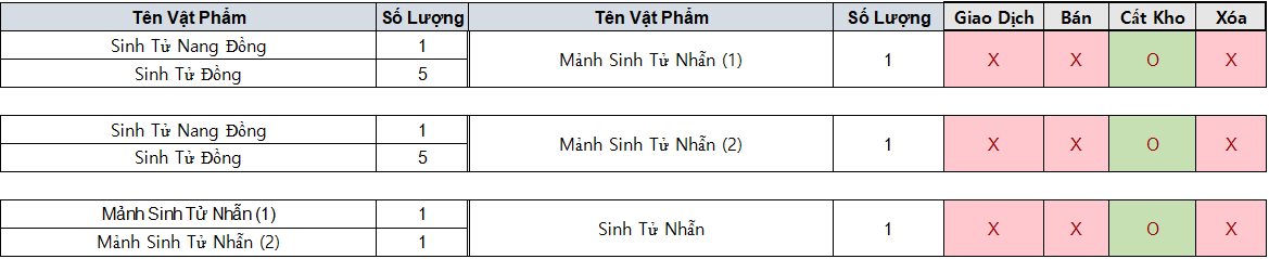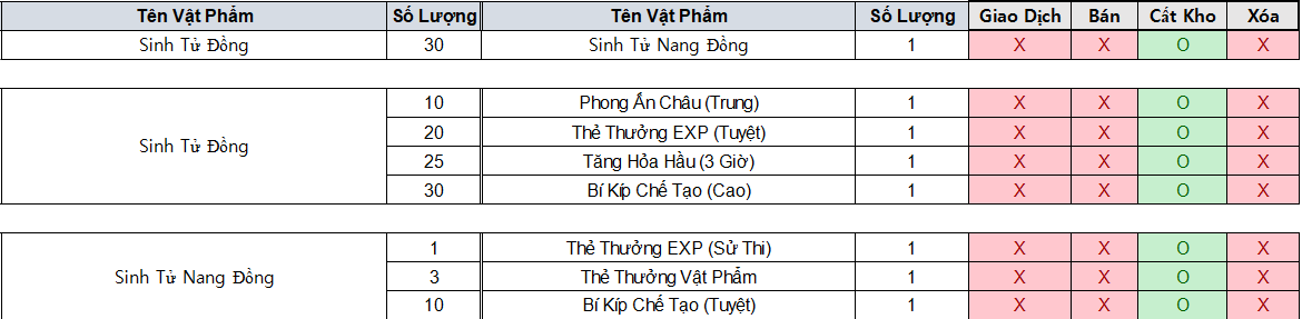 Sinh Tử Đồng: chư vị có thể thu thập 'Sinh Tử Đồng' bằng cách tiêu diệt quái vật với tỉ lệ và cấp độ như sau.