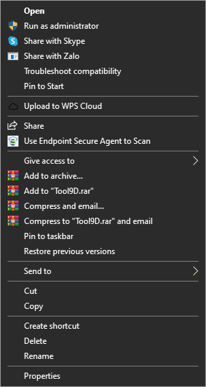 Chọn file Tool9D trong tệp Auto9D chuột phải "Run as adminstrator để khởi động