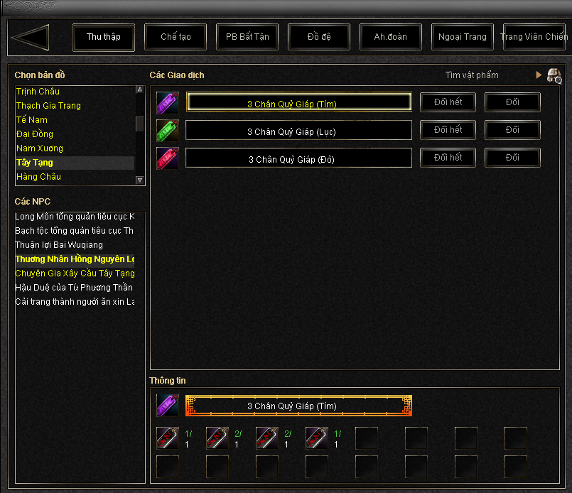 Dùng các thẻ “Hắc Quỷ Giáp” để đổi vé vào cổng, để đổi các Key ( Xanh, Đỏ) đánh Boss Viên Thiệu Luật Sư Vương (Hạ) nhận item và Nước Mắt Thiệu Vương dùng để đổi key Xanh, Tiếp tục vào đánh Boss Viên Thiệu Luật Sư Vương (Trung) nhận item và Nước Mắt Viên Thiệu dùng để đổi key Đỏ.