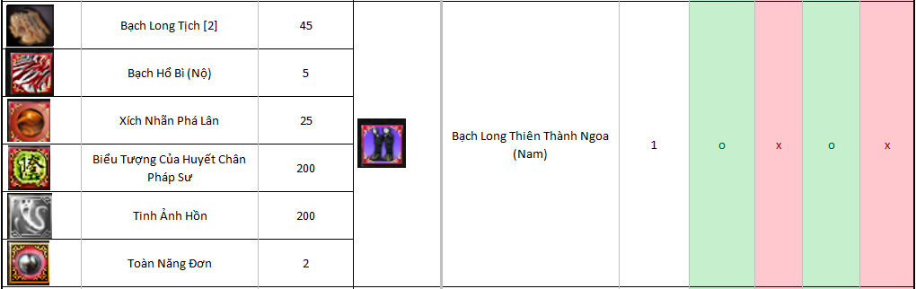 - Cập nhật Ngoại trang "Bạch Long Thiên Trường/ Bạch Long Thiên Thành" (nam/nữ).