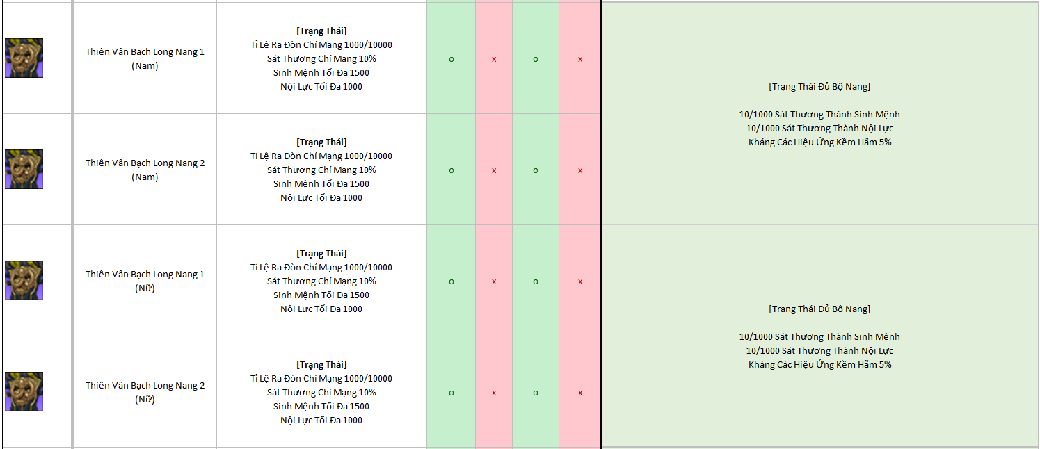 - Cập nhật Nang "Thiên Vân Bạch Long Nang" (nam/nữ).