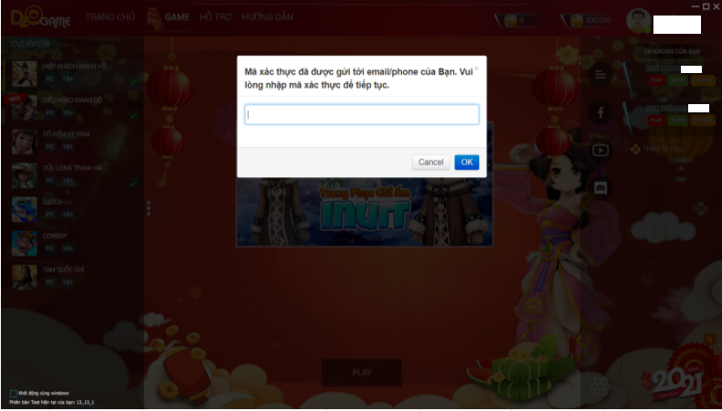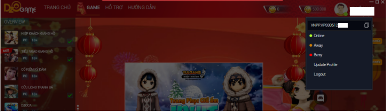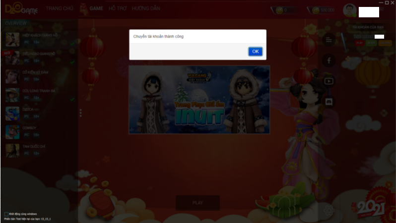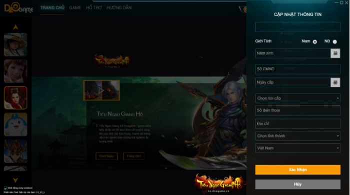 Sau khi hoàn tất cập nhật thông tin thì Đại Hiệp tiến hành thực hiện như các bước như chuyển ID con đối với tài khoản DzoID (tài khoản Dzogame).