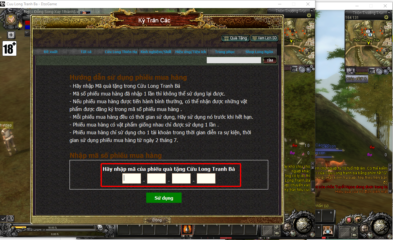 B1) Bằng hữu chọn “ Kỳ Trân Các “ và lựa chọn phần “ Quà Tặng “ để có thể nhập GiftCode. Sử dụng dãy số có trên GiftCode và nhập vào các ô tương ứng.