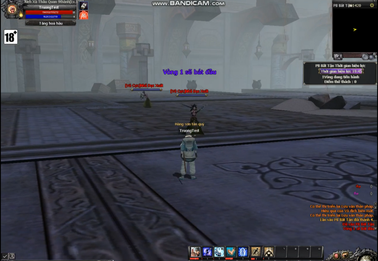 Là phó bản hàng ngày tham gia thông qua nút F11, mỗi ngày có 5 lần được vào(reset số lần lúc 0h). Có 2 hình thức: Cá Nhân và Tổ Đội. Tuỳ vào thời gian cũng như số quái đánh được trong phó bản mà hệ thống sẽ xếp hạng vào mỗi tháng.TOP 50 Cá Nhân và Tổ Đội sẽ nhận được điểm thưởng, hạng càng cao điểm càng nhiều. Có thể dùng điểm để đổi thưởng vật phẩm