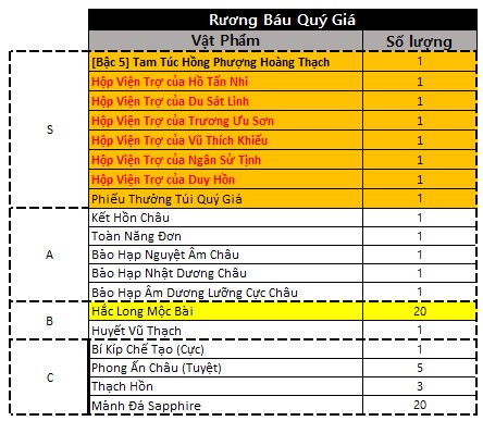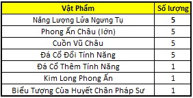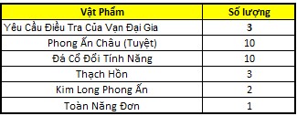 Danh sách vật phẩm có thể nhận của cấp Khó