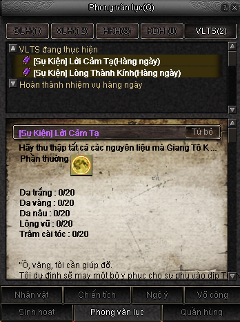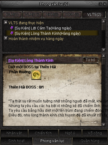 *Lưu ý: để có thể nhận nhiệm vụ anh hùng vui lòng kiểm tra bảng nhiệm vụ hiện có (ấn nhanh Q). Nếu tổng các nhiệm vụ đang >15 vui lòng từ bỏ bớt một số nhiệm vụ trước đó.
