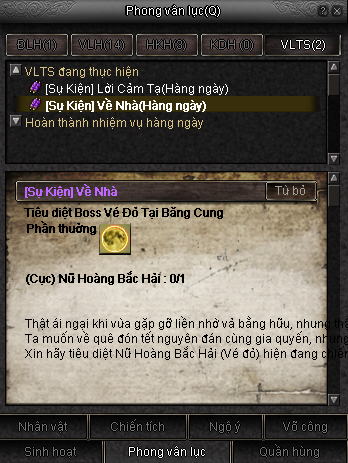 - Để kích hoạt nhiệm vụ Tết Nguyên Đán. Khi vào game anh hùng ấn nhanh phím (H) chọn sự kiện "Thư Từ Hoa Nhi Nữ" và nhận về vật phẩm "THƯ TỪ HOA NHI NỮ".