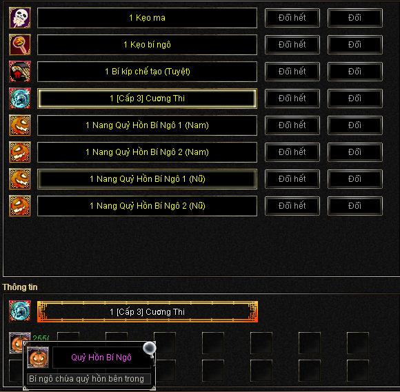 Mục tiêu nhiệm vụ: Tiêu diệt 5 Cương Thi tại Tử Vong Cốc [Sự Kiện], khi tiêu diệt đủ 5 Cương Thi anh hùng sẽ được nhận được 5 "QUỶ HỒN BÍ NGÔ", dùng quỷ hồn bí ngô đổi lấy các vật phẩm sự kiện thông qua NPC [Sự Kiện] Quỷ Linh.