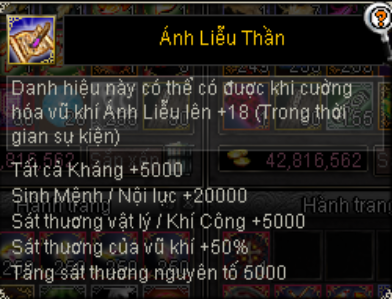 + Mốc 1) Tổng nạp từ 00:00H 19/02/2022 đến 23:59H 20/02/2022 từ 1,500,000 VND tương đương 15,000 Long Kim sẽ được tặng danh hiệu Ánh Liễu Thần (vĩnh viễn).