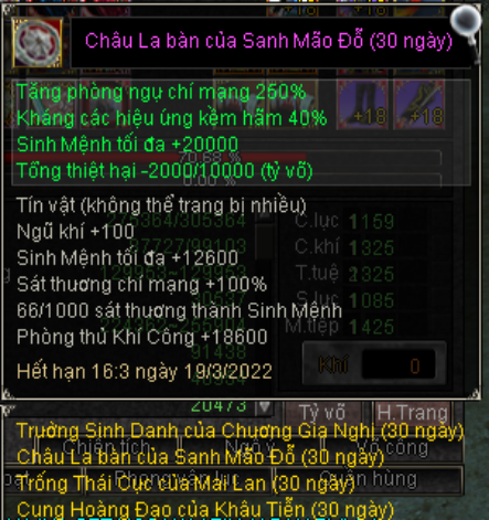 + Mốc 2) Tổng nạp từ 00:00H 19/02/2022 đến 23:59H 20/02/2022 từ 3,000,000 VND tương đương 30,000 Long Kim sẽ được tặng danh hiệu Ánh Liễu Thần (vĩnh viễn) và một bộ tín vật Zodiac (30 ngày).